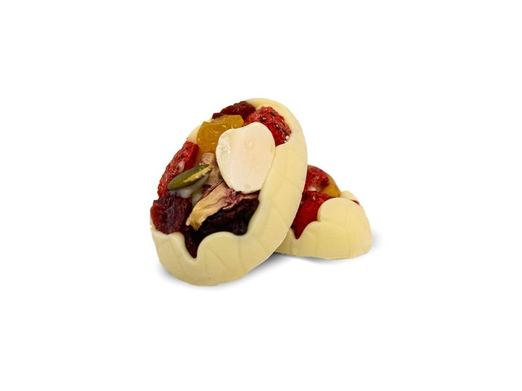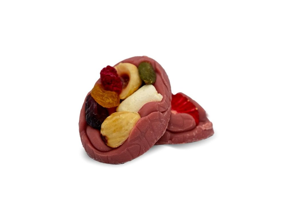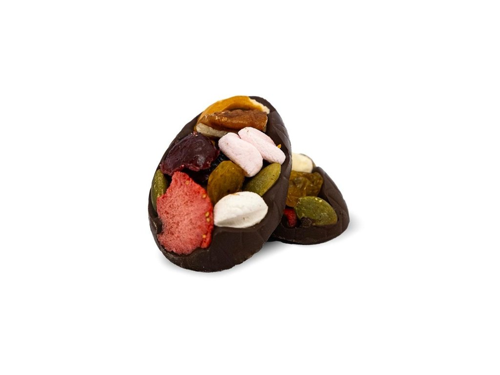 Složení: Sušené ovoce, ořechy, marshmallow, hořká čokoláda 55 %, mléčná čokoláda 36 %, ruby čokoláda 47 %, bílá čokoláda 31 %. Obsahuje stopy ořechů a lepku.