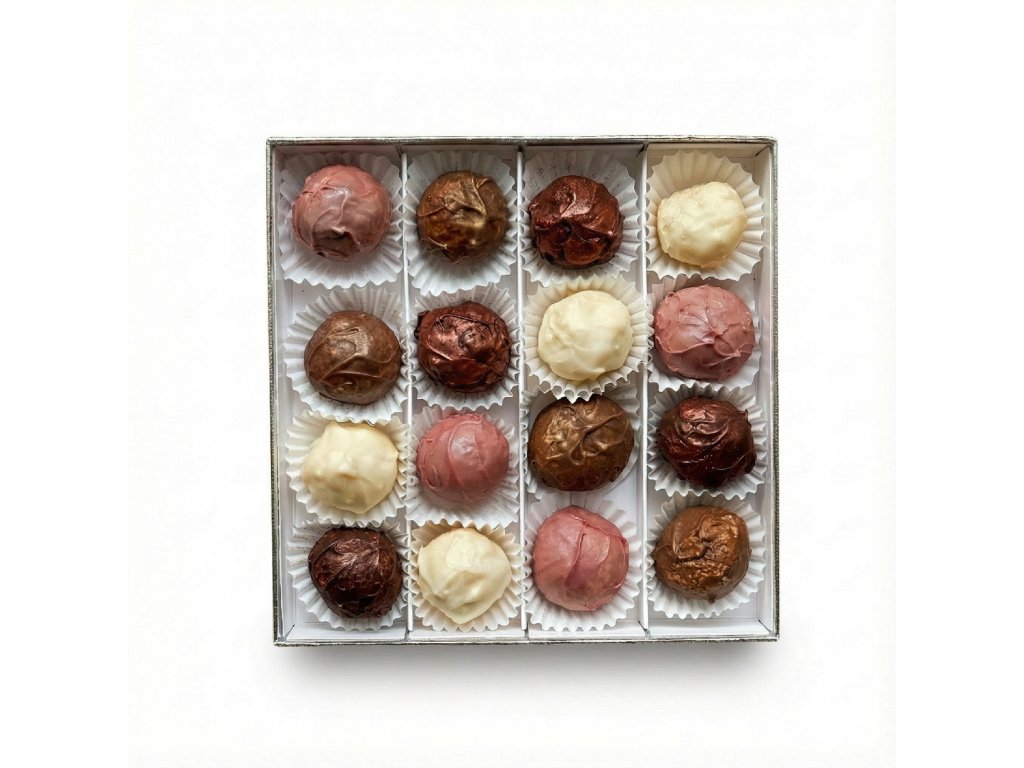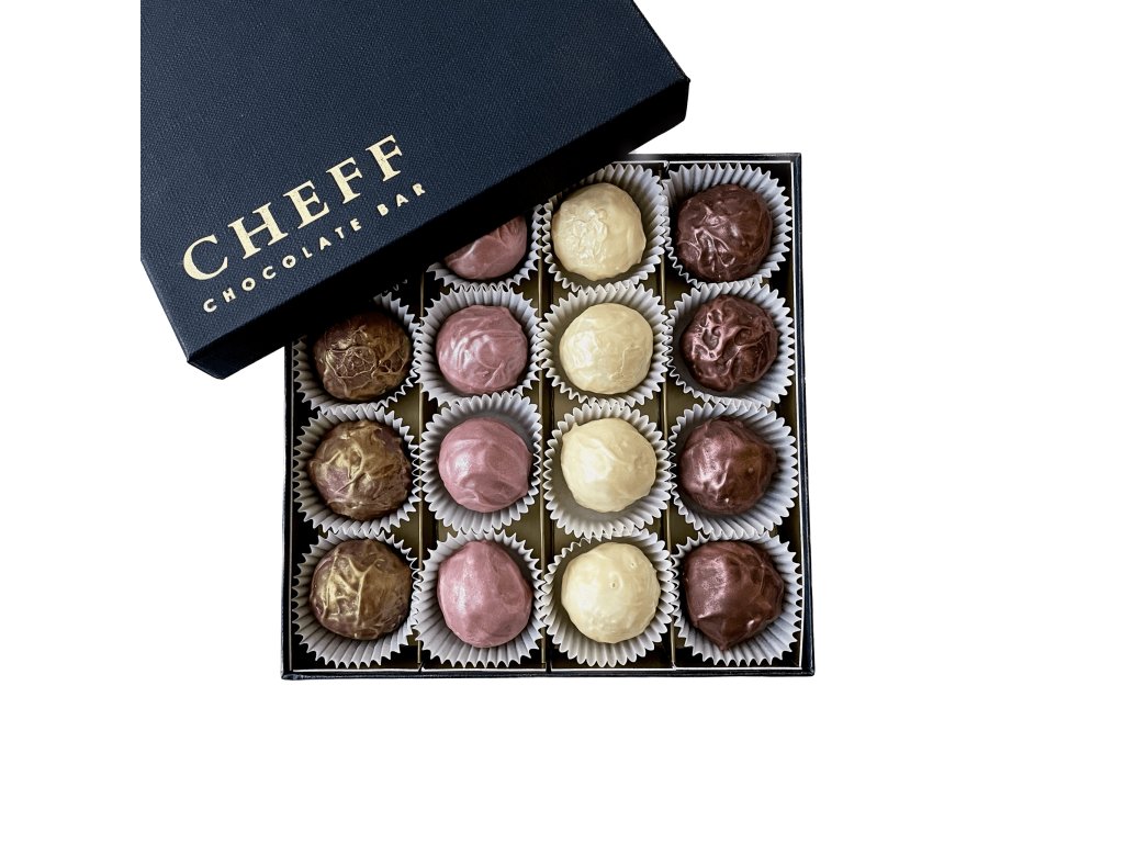 Objevte exkluzivní set 16 ručně vyrobených čokoládových lanýžů CHEFF od Cheff Chocolate Bar — výběr bestsellerů s prémiovou belgickou čokoládou kombinující přírodní pasty, pražené ořechy, koření a tropické ovoce. Každý lanýž je pečlivě zhotoven z prvotřídních surovin.